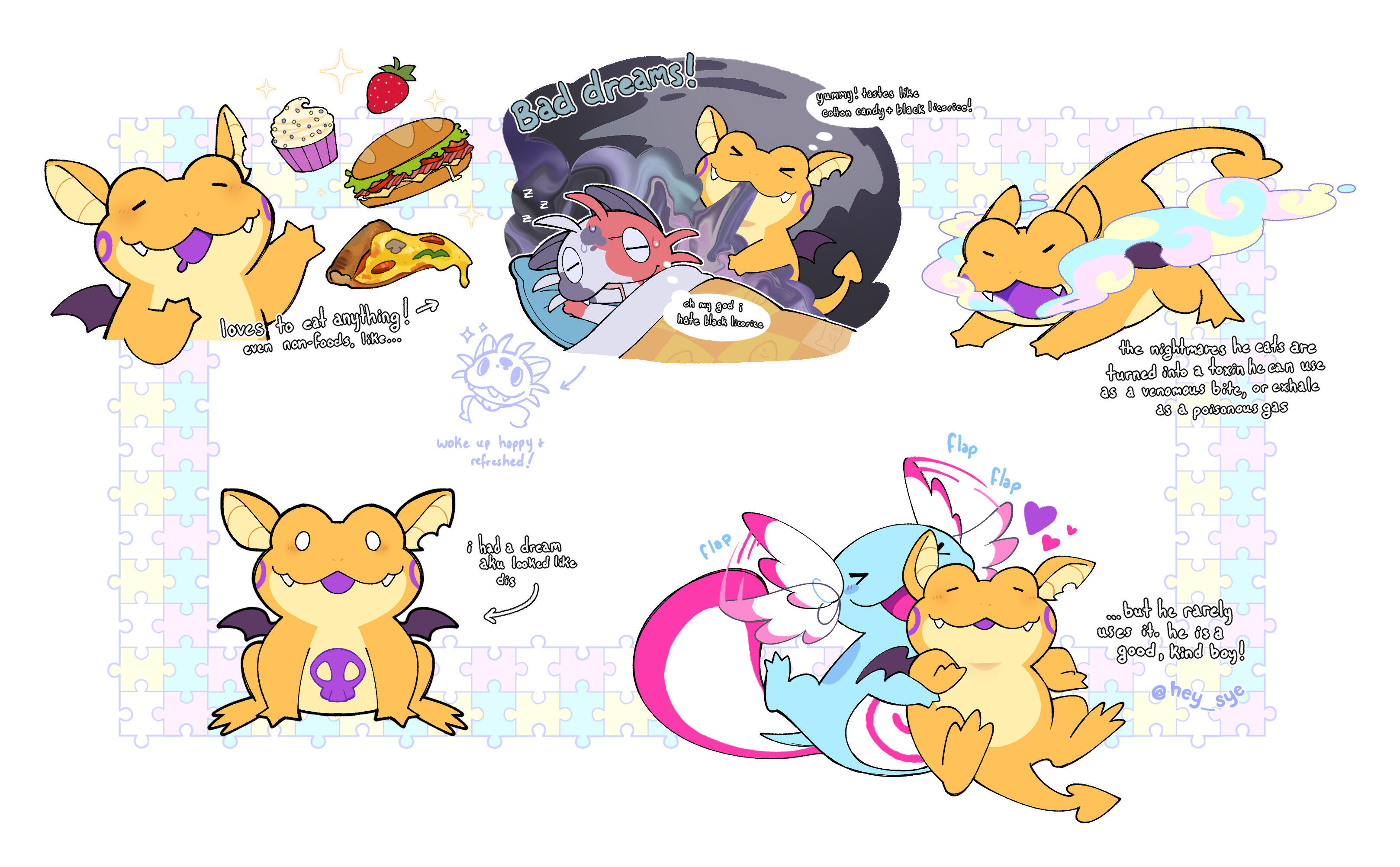 i love to draw cute creatures with unique designs and fun colors. it's my dream to contribute character art or designs to more creative projects one day- please reach out if you'd like me on board!